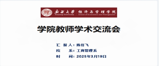 公司教师学术交流会是公司有组织科研的具体表现,原则上每两周举办一次。汇报人员采取“自愿报名+邀请推荐”相结合的方式,交流主题覆盖经济学、管理科学与工程、工商管理等领域,同时鼓励跨学科交流,结合最新员工动态,讨论当前热点问题。未来,学院将持续搭建好青年教师学术交流的平台,着力解决教师在学术领域中遇到的系列问题。
