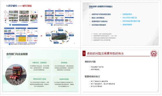 本次汇报交流的主要内容包括:一是自身研究方向相关的国家战略、新疆现实发展的痛点问题及其背后对应的科学问题;二是自身的学术规划、拟打造的学术脸谱,以及研究可能所属的一级学科、二级学科;三是自身研究中可能合作的人员和团队;四是自身研究中可以合作的政府部门和企业;五是目前研究中碰到的问题,以及希望学院提供的具体帮助。