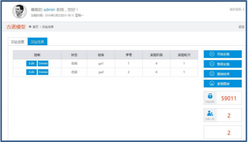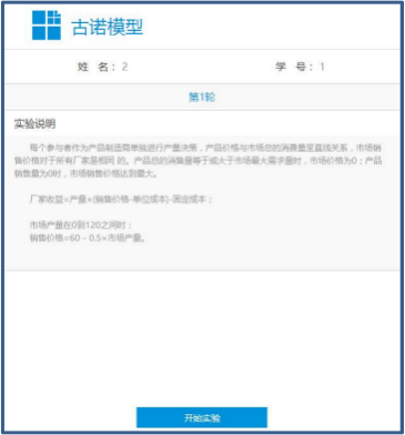 3 主持者点击所选择实验中的开始,进入实验参数界面 ,设置关于参与人数、每组 人数、总回合数和实验名字等实验环境参数; 依据实验案例及实验模型,设置实验过程参 数,点击进入实验,进入实验进程界面,生成实验验证码。