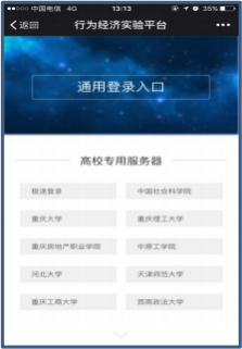 2 主持者进入登录界面,输入账号和密码,进入实验平台选择实验。(浏览器特别推 荐 Google 内核浏览器:最新版的猎豹、Google、QQ、遨游、360“极速模式”和 Mic 的 Edge 等浏览器)